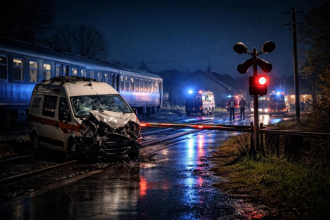 Ambulanță lovită de tren la trecerea de nivel: ce se știe despre starea pacientului și a echipajului