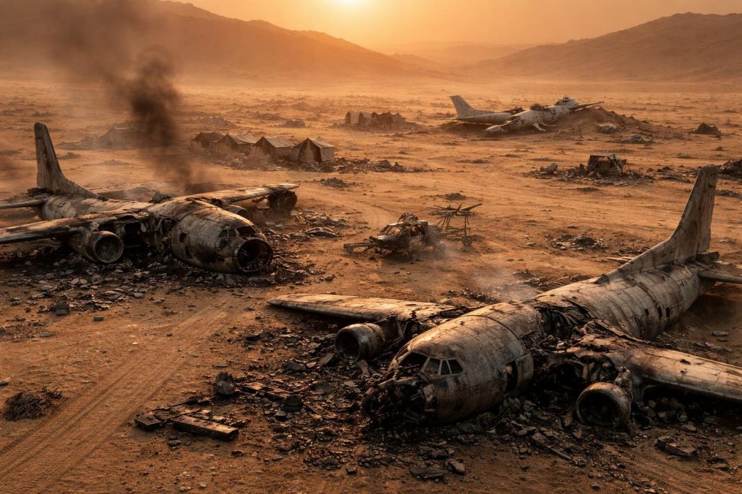 Într-un episod tensionat în Orientul Mijlociu, forțele speciale ale Statelor Unite au desfășurat o operațiune de salvare a unui pilot american (WSO) aflat la bordul unui F-15E doborât în Iran. După extragerea pilotului, decizia de a proteja secretele militare a fost dusă la extrem: două avioane MC-130J Commando II și un MH-6 Little Bird, aflate pe o bază improvizată, au fost distruse pentru a împiedica accesul inamicului la tehnologiile sensibile.